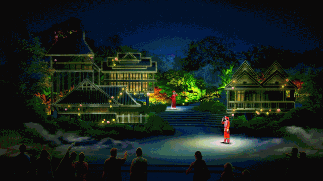 入夜,大型灯光瀑布秀,跨国燃情焰火秀,点亮德天之夜。“花神创世”“神画德天”“骆越传承”“融情边境”“盛世礼赞”五幕旷世神话奇幻上演,于流光飞瀑间展现声光奇境的无穷魅力。